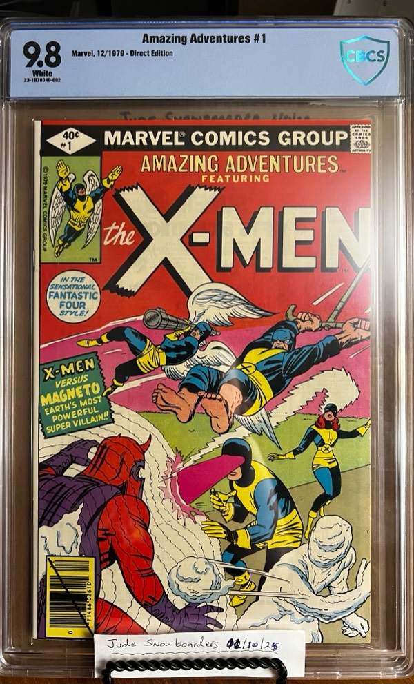 – Amazing Adventures #1 9.8 CBCS KEY: 1979 Bronze age, Reprint of X-Men #1 (1963), Partial reprint of X-Men #38 (1967). Art: Jack Kirby cover. Roy Thomas Story. Census: Only 2 Yellow labels in the world! $150 Shipped