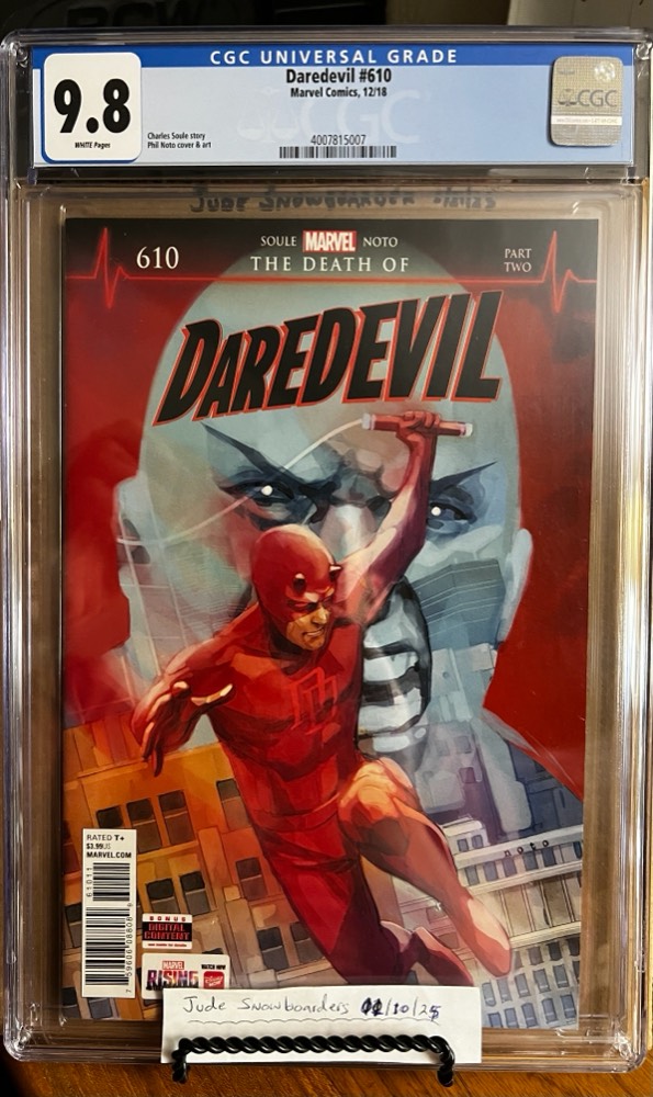 Daredevil #610 9.8 CGC (Vol 5). KEY: – 1st full app of Vigil – Art: Charles Soule story, Phil Noto cover & art – Census: Only 38 Blue (And only 2 Yellow/Signed) labels in the world!!! – Cheapest Available on E-Bay $101 Shipped (At time of ad) – Comics are ALWAYS priced lower than any […]
