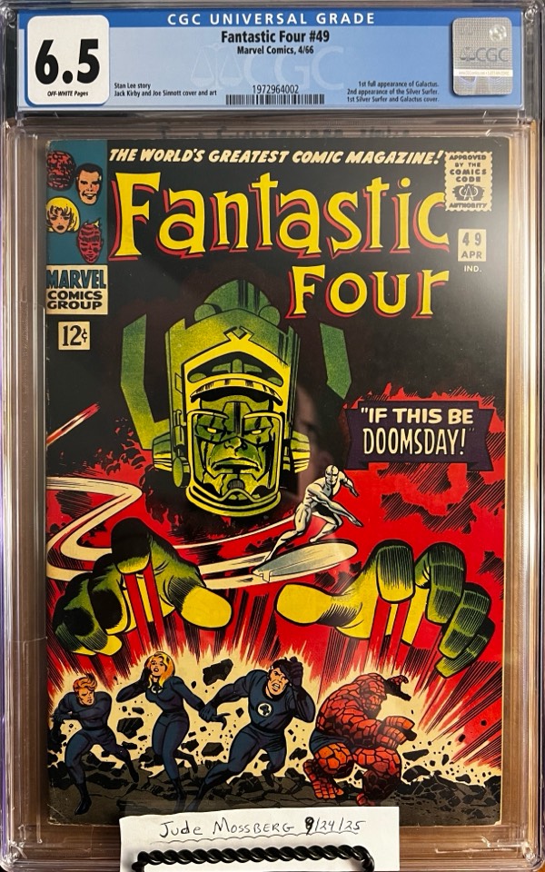 – Fantastic Four #49 6.5 CGC 1st full app. Galactus, 1st app. Punisher Robot, 1st cover app. & 2nd app. Silver Surfer. $850