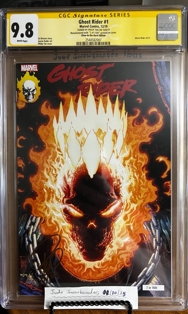 – Ghost Rider #1 9.8 CGC SS Signed by Philip Tan (Vol 8). KEY: Glow-in-the-dark edition $325
