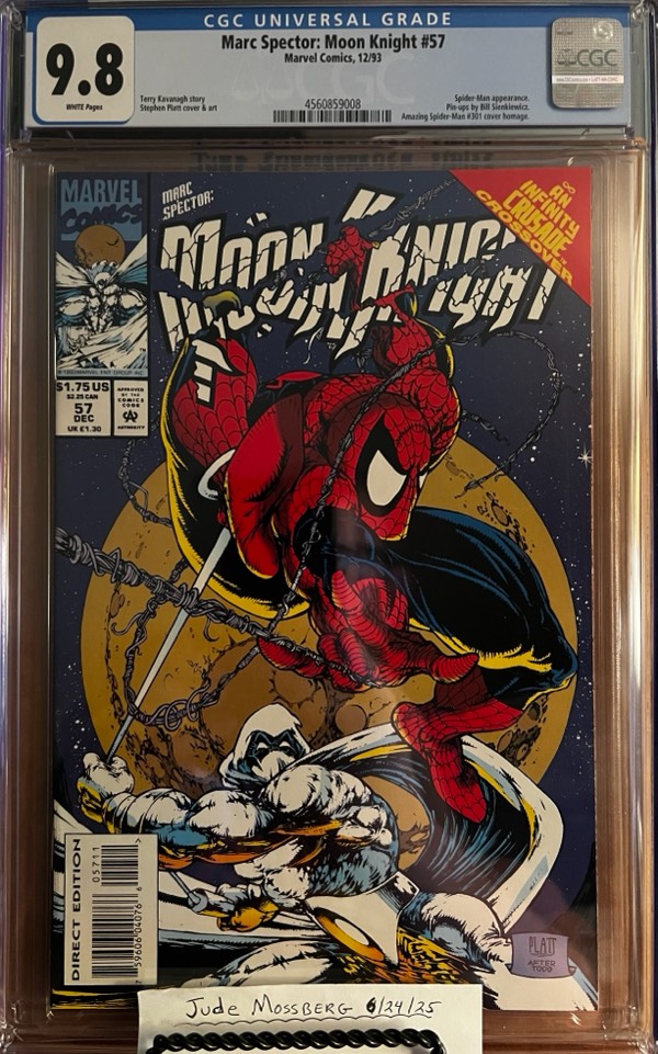 – Marc Spector: Moon Knight #57 9.8 CGC Spider-Man, ASM #300 Homage $165