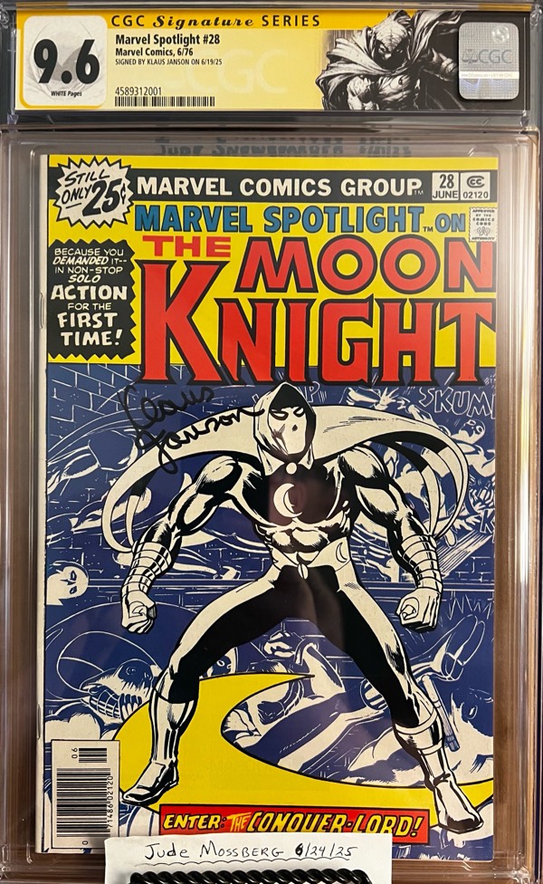 – Marvel Spotlight #28 9.6 CGC SS Signed by Klaus Janson! KEY: 1st solo Moon Knight story. $500
