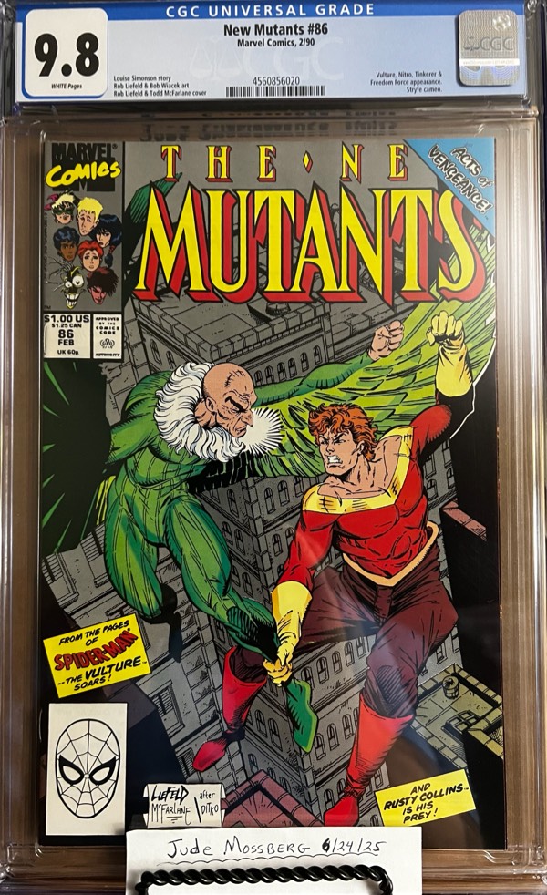 – New Mutants #86 9.8 CGC KEY: 1st cameo app of Cable – Rob Liefeld confirms this is not a teaser but an in-story app. $250