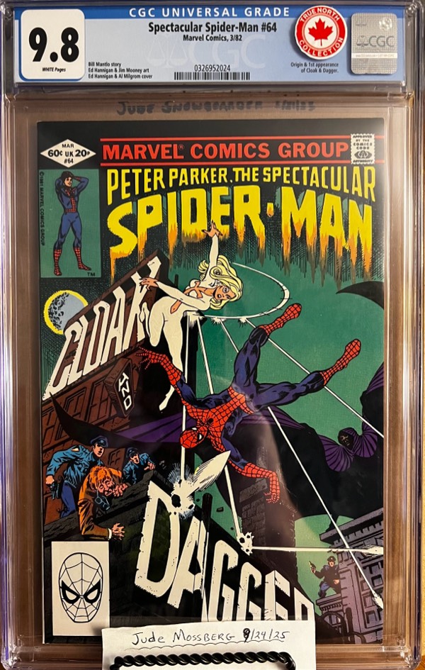 – Spectacular Spider-Man #64 9.8 CGC True North Pedigree, 1st app and origin of Cloak and Dagger. $540