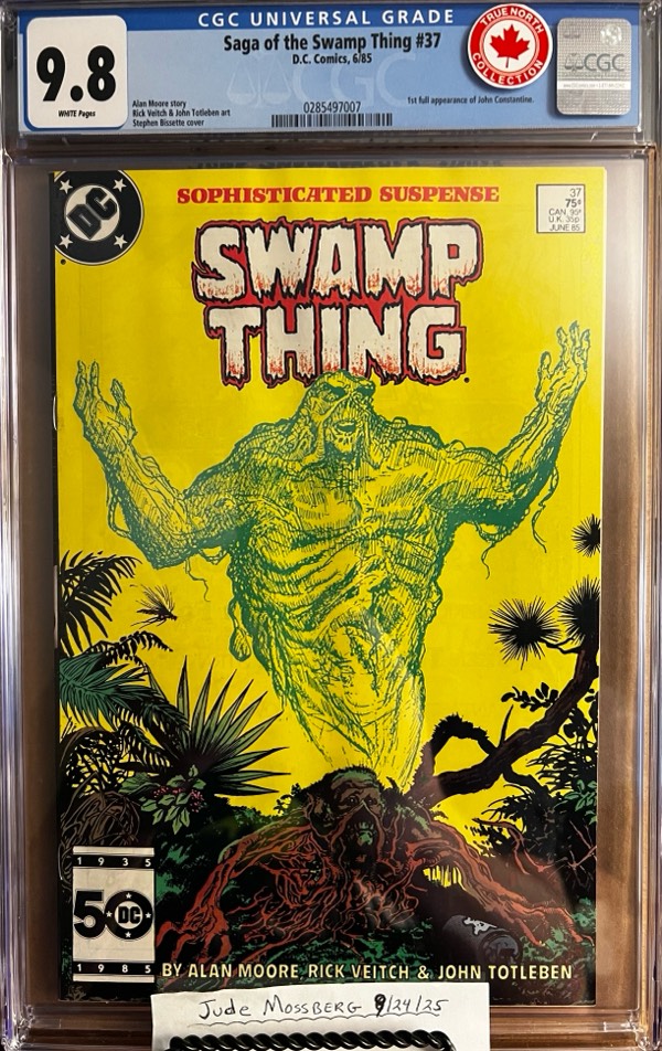 – Swamp Thing #37 9.8 CGC Pedigree True North Collection. 1st full app. John Constantine. $1,300
